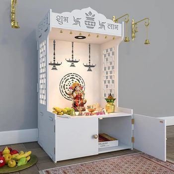 कस्टम आकार सफेद mdf लकड़ी के मंदिर भारतीय पूजा मंदिर के लिए दराज हाथ से नक्काशी के साथ लटका हुआ