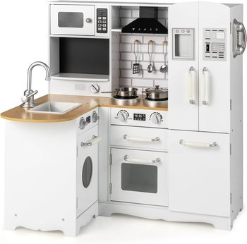 مجموعة ألعاب زاوية مطبخ الأطفال ، لعبة خشبية ، غسالة واقعية ، ميكروويف ، فرن ، موقد ، ثلاجة