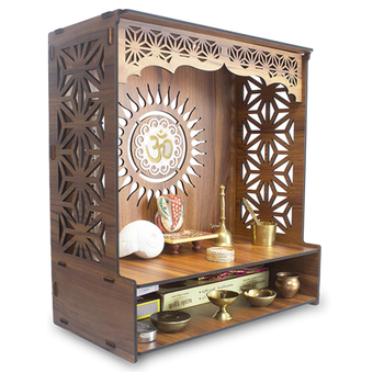 معبد منزلي خشبي مع باب ورف وضوء ليد مدمج